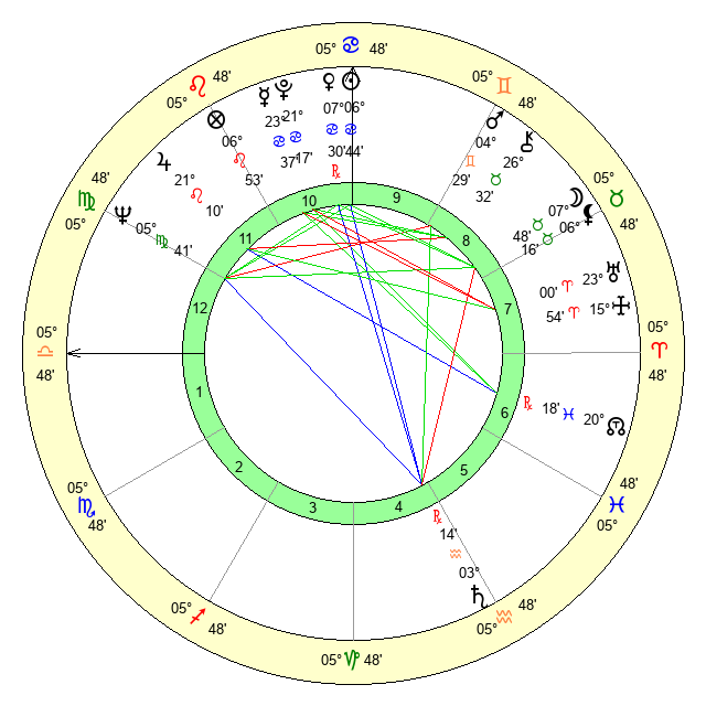 | Sun | 6 Cancer 44 | 7 Cancer 15 | 6 Libra 19 |