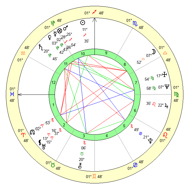 | Neptune | 7 Virgo 59 | 29 Pisces 22 | 6 Virgo 19 |