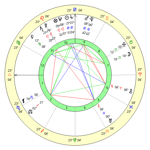 | Sun | 27 Cancer 51 | 29 Cancer 11 | 11 Scorpio 13 |