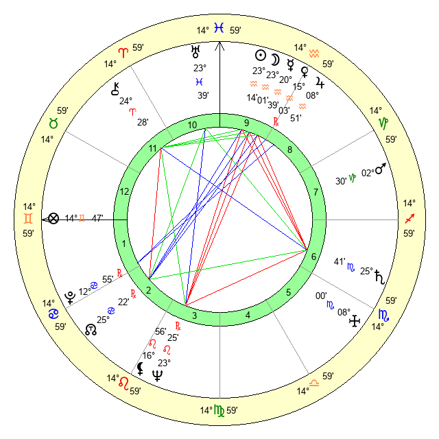| Jupiter | 8 Aquarius 46 | 11 Gemini 23 | 26 Aquarius 7 |