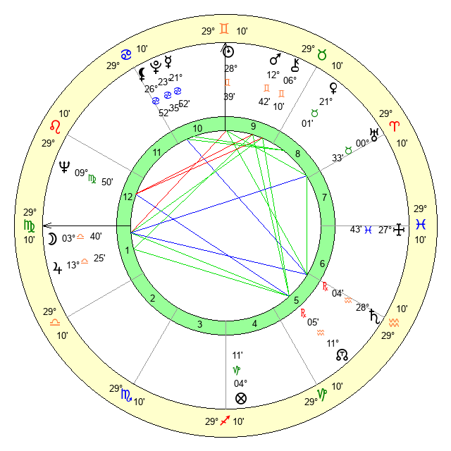 | Mars | 12 Gemini 42 | 1 Virgo 53 | 12 Leo 40 |