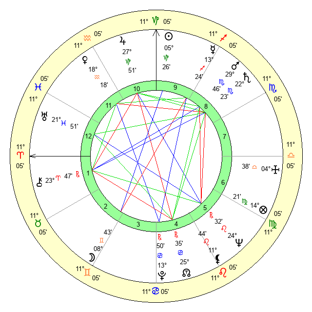 | Mars | 29 Scorpio 47 | 3 Leo 14 | 9 Aquarius 46 |