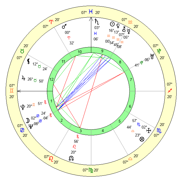 | Pluto | 20 Gemini 52 | 2 Aquarius 12 | 22 Gemini 1 |