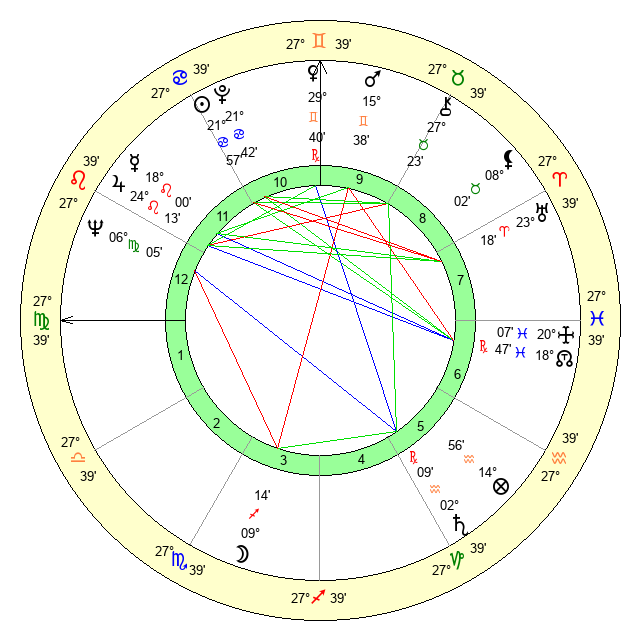 | Venus | 29 Gemini 40 | 11 Gemini 10 | 9 Virgo 33 |