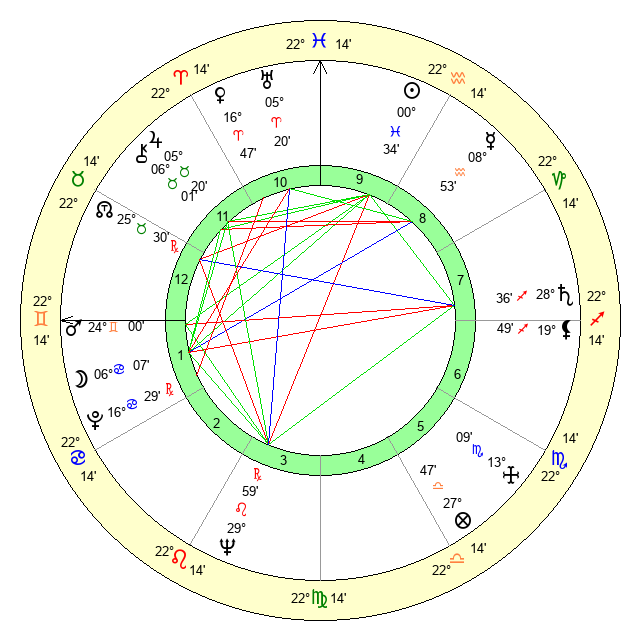 | Sun | 0 Pisces 35 | 1 Pisces 18 | 4 Gemini 56 |