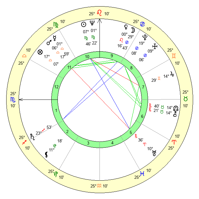 | Venus | 0 Leo 17 | 7 Leo 12 | 28 Scorpio 1 |