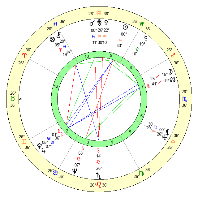 | Neptune | 7 Leo 58 | 27 Pisces 50 | 6 Leo 42 |