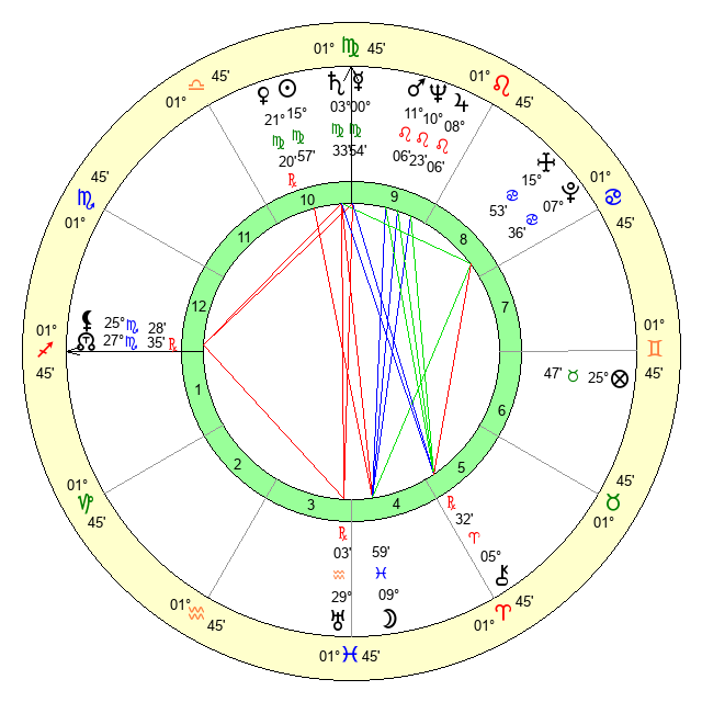 | Saturn | 4 Virgo 12 | 29 Pisces 16 | 12 Virgo 24 |