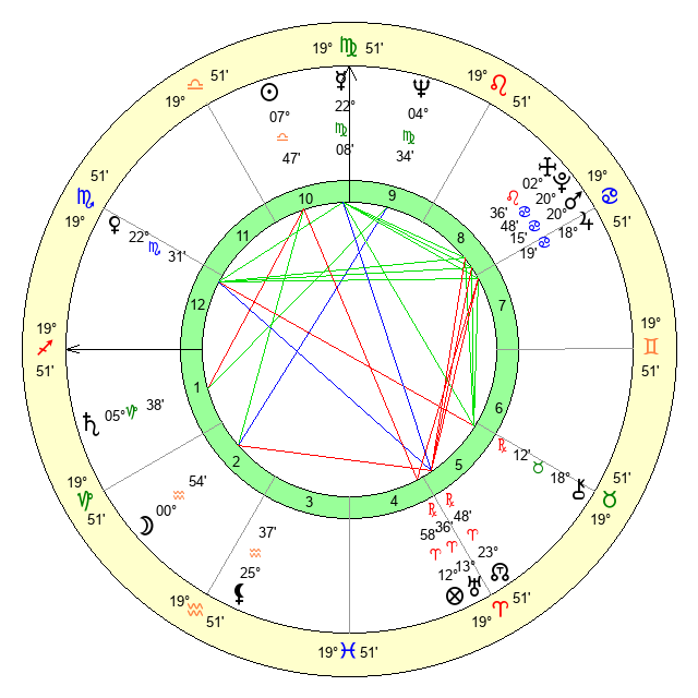 | Venus | 22 Scorpio 31 | 14 Virgo 56 | 0 Sagittarius 35 |