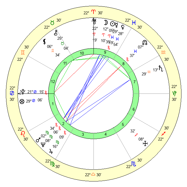 | Mars | 2 Virgo 34 | 21 Cancer 58 | 24 Virgo 38 |
