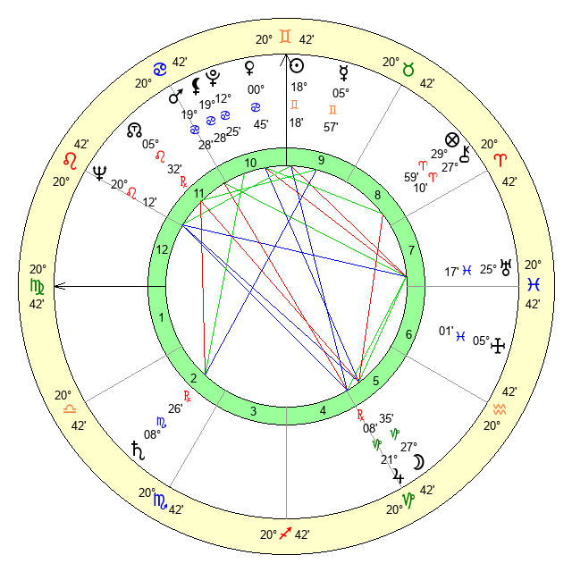 | Sun | 18 Gemini 19 | 19 Gemini 6 | 24 Virgo 16 |