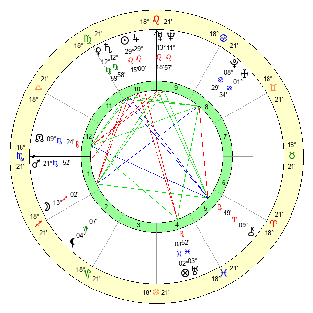 | Mercury | 13 Leo 18 | 11 Leo 50 | 23 Scorpio 3 |