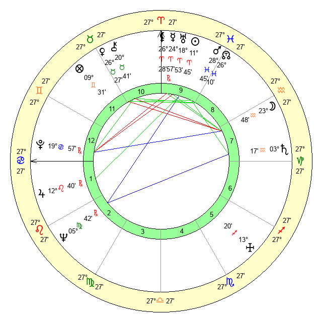 | Mars | 28 Pisces 46 | 23 Cancer 50 | 8 Gemini 0 |