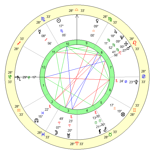 | Neptune | 9 Virgo 53 | 29 Pisces 37 | 9 Virgo 16 |
