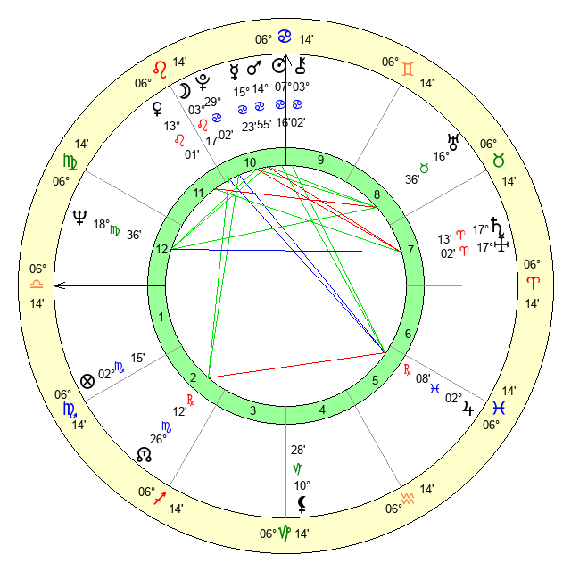 | Mars | 14 Cancer 55 | 7 Virgo 1 | 10 Virgo 41 |