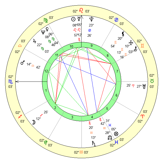 | Neptune | 8 Virgo 46 | 1 Aries 57 | 11 Virgo 51 |