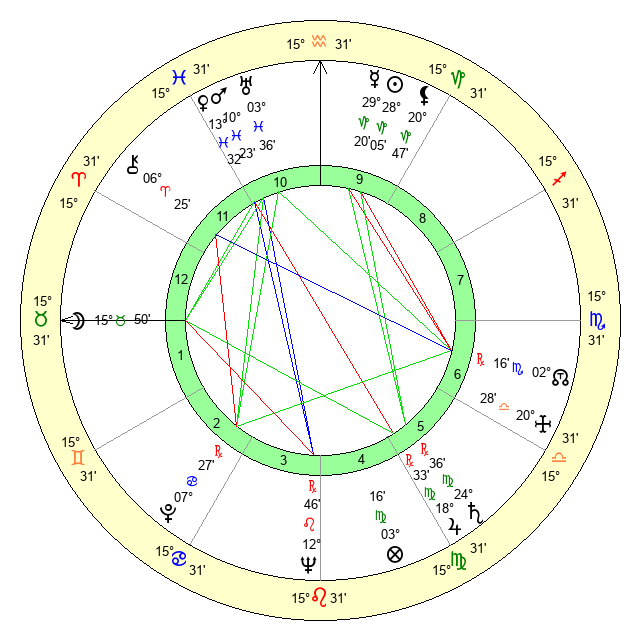 | Moon | 15 Taurus 58 | 24 Virgo 40 | 9 Pisces 33 |