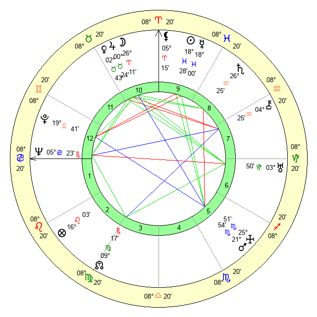 | Neptune | 5 Cancer 24 | 29 Pisces 13 | 8 Cancer 10 |