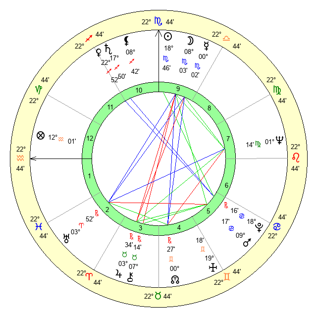 | Neptune | 1 Virgo 15 | 29 Pisces 35 | 0 Virgo 5 |