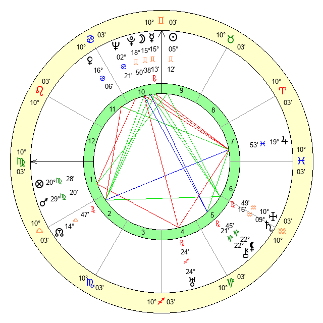 | Sun | 5 Gemini 12 | 6 Gemini 39 | 2 Libra 25 |
