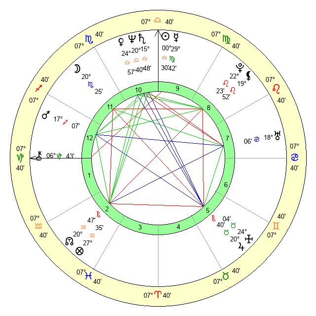 | Venus | 24 Libra 57 | 5 Virgo 0 | 23 Capricorn 51 |