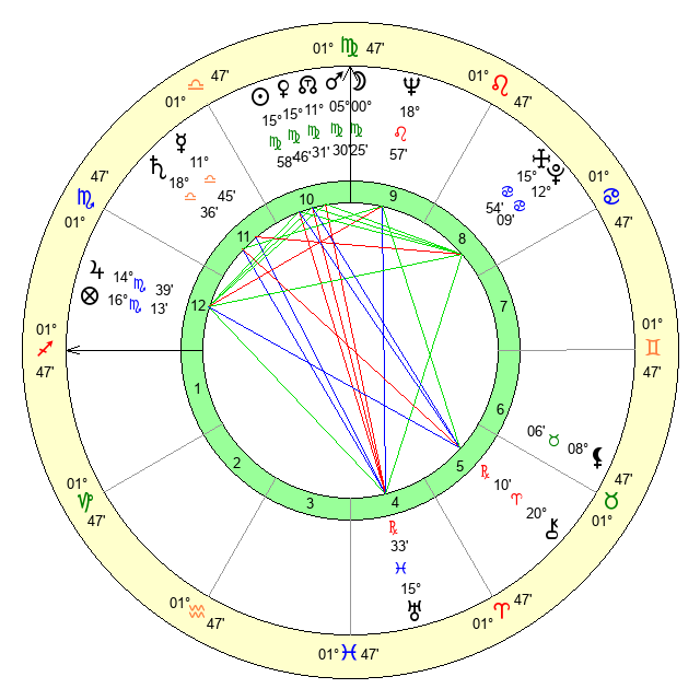 | Venus | 15 Virgo 47 | 18 Leo 3 | 23 Capricorn 0 |