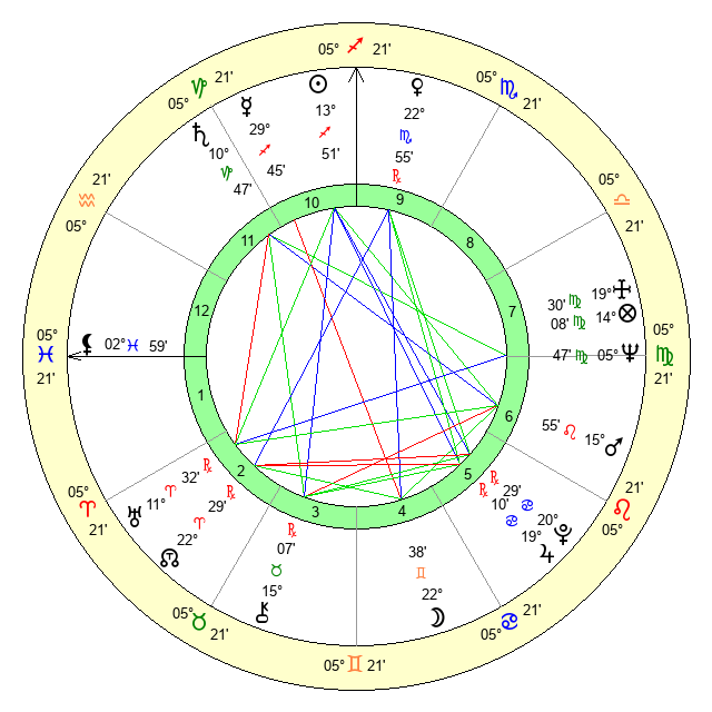 | Neptune | 5 Virgo 47 | 29 Pisces 22 | 3 Virgo 59 |