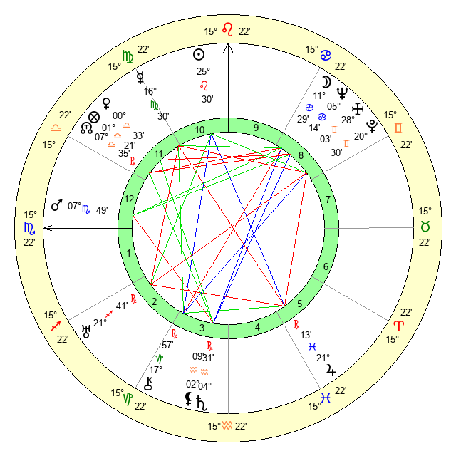 | Mercury | 16 Virgo 31 | 8 Leo 24 | 11 Capricorn 53 |