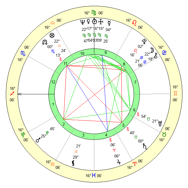 | Venus | 17 Virgo 5 | 17 Leo 59 | 4 Capricorn 18 |