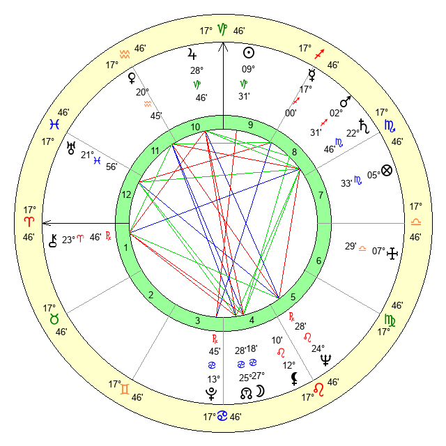 | Moon | 27 Cancer 15 | 19 Capricorn 58 | 10 Pisces 30 |