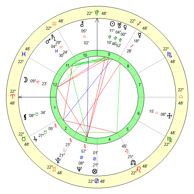 | Moon | 9 Aries 25 | 13 Aquarius 40 | 6 Leo 6 |