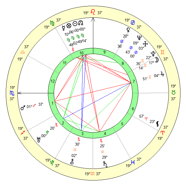 | Moon | 17 Gemini 8 | 18 Virgo 54 | 12 Scorpio 55 |