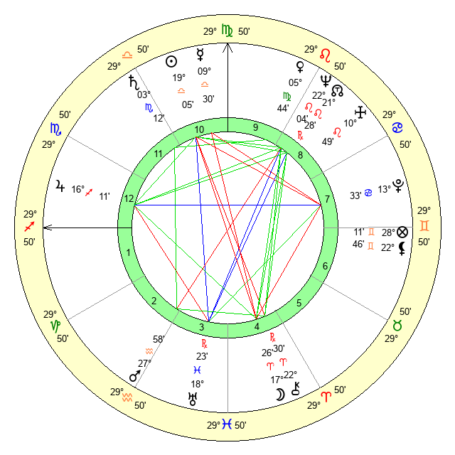 | Venus | 5 Virgo 45 | 28 Virgo 32 | 8 Capricorn 27 |