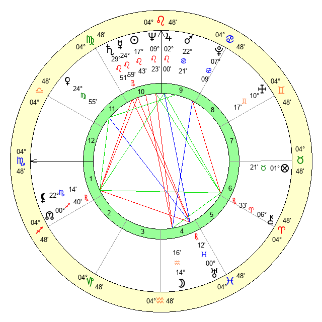 | Venus | 24 Virgo 54 | 13 Cancer 9 | 15 Libra 26 |