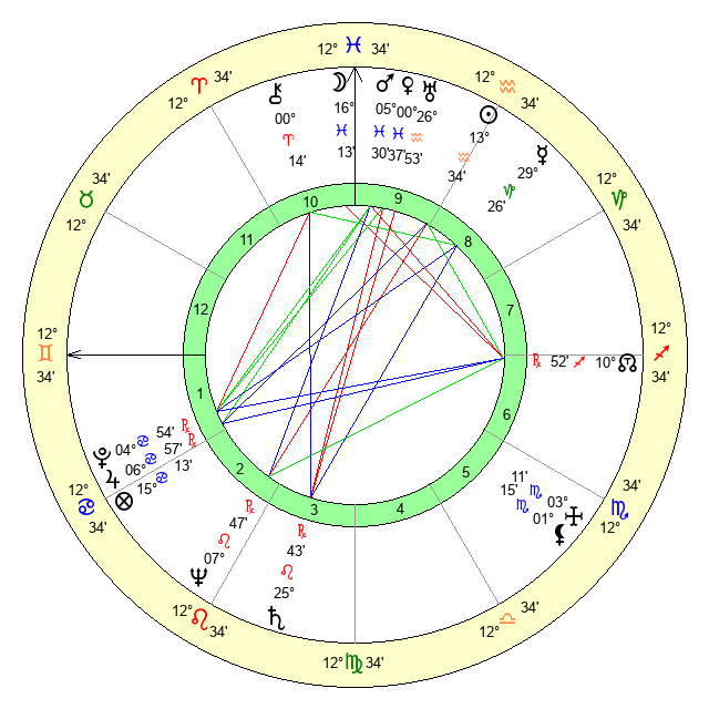 | Moon | 16 Pisces 9 | 20 Aries 6 | 28 Capricorn 38 |