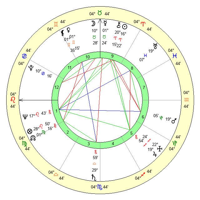 | Neptune | 17 Leo 42 | 0 Aries 15 | 19 Leo 6 |