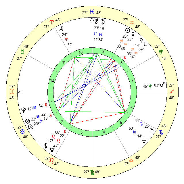 | Jupiter | 9 Aquarius 10 | 11 Gemini 26 | 26 Aquarius 14 |
