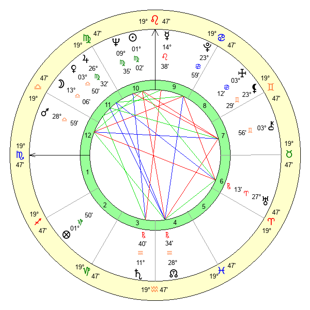 | Moon | 13 Libra 9 | 18 Virgo 54 | 6 Pisces 47 |