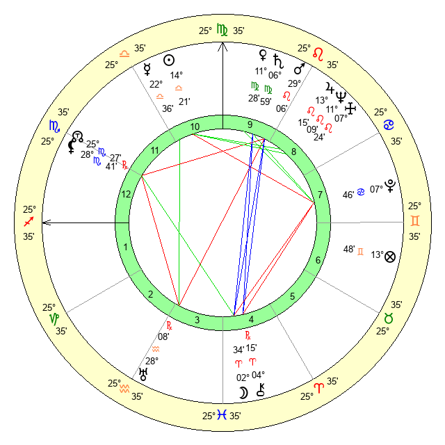 | Saturn | 7 Virgo 39 | 27 Pisces 4 | 11 Virgo 37 |