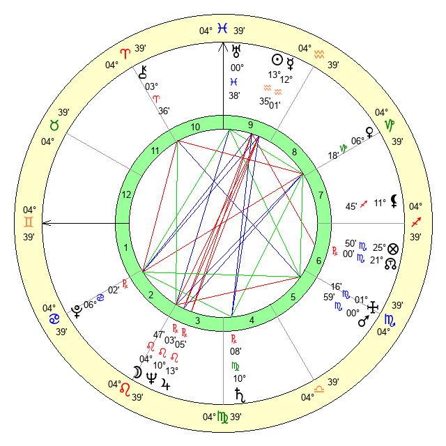 | Saturn | 10 Virgo 54 | 17 Pisces 39 | 5 Virgo 39 |