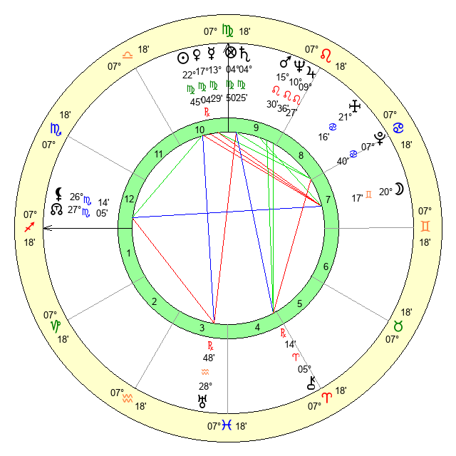 | Saturn | 5 Virgo 4 | 28 Pisces 44 | 12 Virgo 21 |