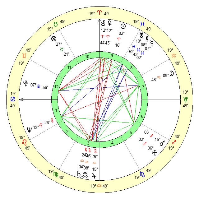 | Sun | 2 Aries 17 | 3 Aries 19 | 11 Cancer 54 |