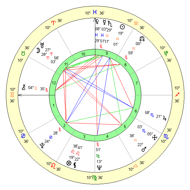 | Saturn | 29 Aquarius 25 | 18 Pisces 13 | 8 Pisces 52 |