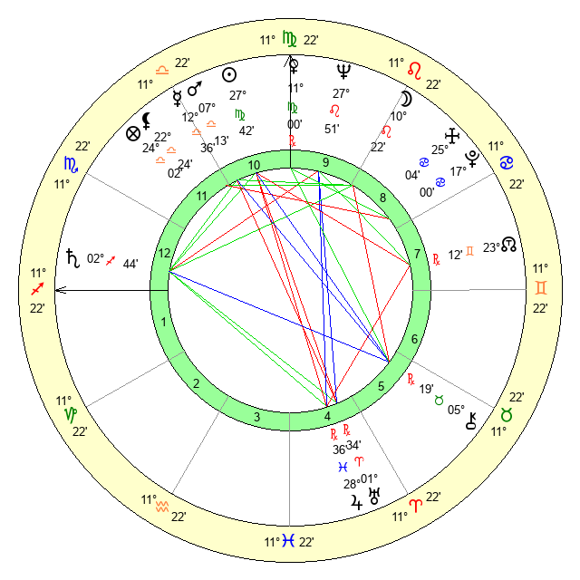 | Venus | 11 Virgo 0 | 2 Virgo 40 | 22 Scorpio 37 |