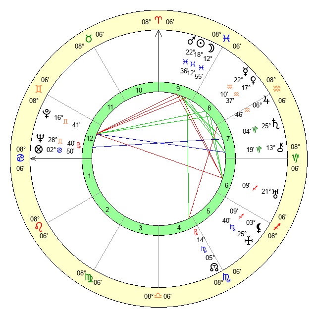 | Mars | 22 Pisces 36 | 18 Cancer 6 | 23 Gemini 12 |