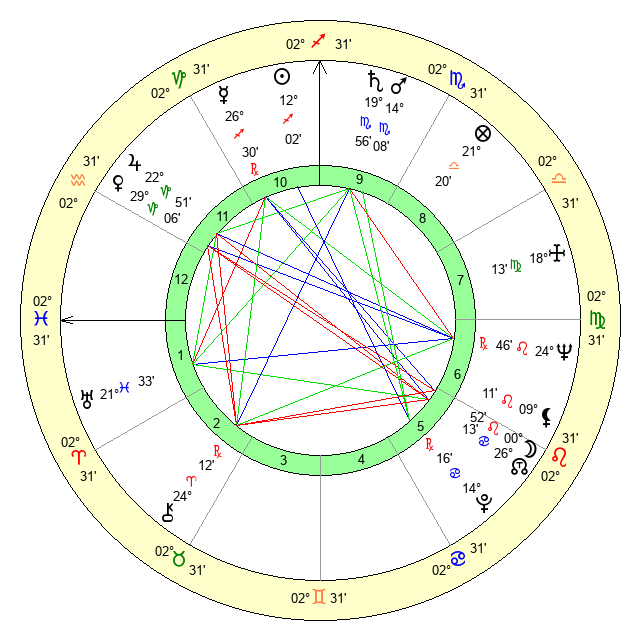 | Saturn | 20 Scorpio 24 | 25 Pisces 6 | 26 Scorpio 31 |