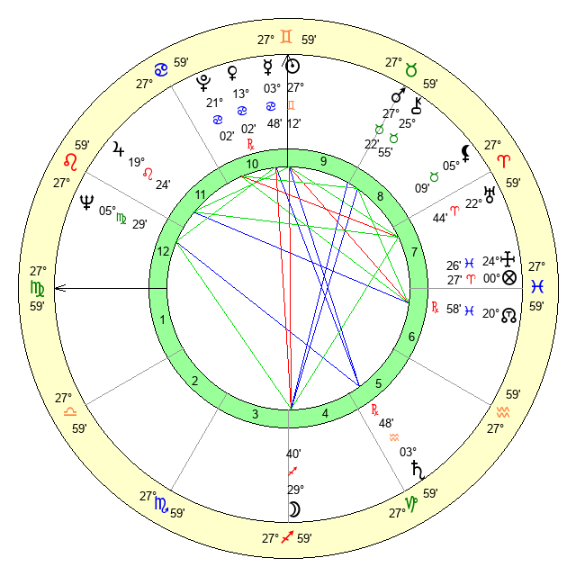| Sun | 27 Gemini 12 | 27 Gemini 42 | 26 Virgo 31 |