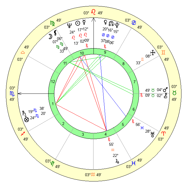 | Moon | 7 Virgo 35 | 2 Pisces 23 | 24 Aries 41 |