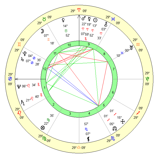 | Sun | 13 Aries 52 | 15 Aries 10 | 25 Cancer 57 |