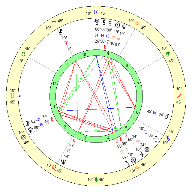 | Mercury | 0 Pisces 17 | 19 Aquarius 35 | 23 Gemini 16 |